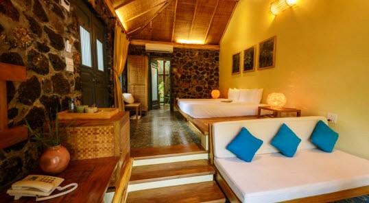 Featuring thatched roof and tiled flooring, air-conditioned rooms include a personal safe, wardrobe, a minibar and seating area. Rooms come with an en suite bathroom equipped with bathtub and free toiletries.