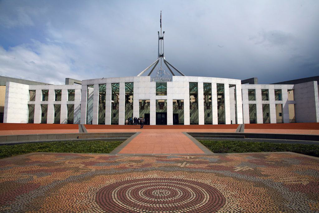 New Parliament house - Nhà Quốc hội - Không giống như toà nhà Quốc hội của nhiều nước khác được thiết kế nhằm phô diễn quyền lực hoặc thể hiện xu hướng chính trị quốc gia, toà nhà Quốc hội Úc được thiết kế mở, hướng tới nhiều đặc điểm tự nhiên của nước này. Thay vì ngự trị trên một đỉnh đồi cao, điều sẽ đem lại cảm giác áp đặt tới dân chúng, toà nhà được xây dựng phía dưới chân đồi, trên một khu đất bằng phằng, điều này cho thấy sự hoan nghênh và gần gũi với nhân dân của chính quyền.